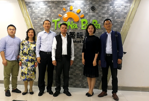 当日下午,李江一行前往茶山镇,实地走访公司88级员工罗建平先生创建的东莞东芭玩具制造有限公司,受到热情接待。罗总带领母校老师参观了公司的玩具成品展和生产车间,详细介绍了各类产品的设计理念、产品功能和市场推广情况,同时就自己的创业发展历程进行了分享;在座谈交流中,双方围绕老员工创新创业、实习招聘、国际贸易行业发展、商英人才培养等展开了热烈探讨,达成许多一致与合作意向。