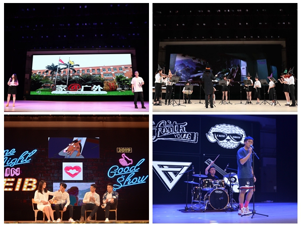 管弦乐队以哈利波特主题的着装亮相,充分吸引在场各位的目光后又以清新悠扬的乐声演奏了《哈利波特组曲》。15级辅导员陈娓老师一首改编的rap《爱在广外》将晚会推向高潮。节目间还穿插着老师、同学们的寄语与祝福视频,烘托现场气氛,使温柔情满溢。小品《马什么男?什么马男?马男什么?》则凭借着走心演绎博得在场观众的阵阵笑声。晚会在霏阳乐队演唱的《我问问他们》中渐渐落下帷幕。