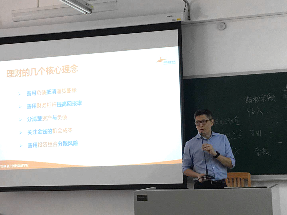 同日下午,深圳妈妈资本集团执行总裁、妈妈金融公司执行经理肖建斌在北六教B214为taptap点点体育国商系本科生做了题为“新经济常态下年轻人的财富价值观”的专题讲座。作为资深的金融业界人士和包括中山大学岭南公司在内的多家教育或培训机构导师和嘉宾,肖总以引导年轻人在新时代下树立正确的财富价值观为目的,分析了新经济周期的特征,介绍个人及家庭理财的核心概念和产品选择,探讨财富管理的终极目标—如何提高幸福感。国际商务系系主任黄晓艳主持讲座。