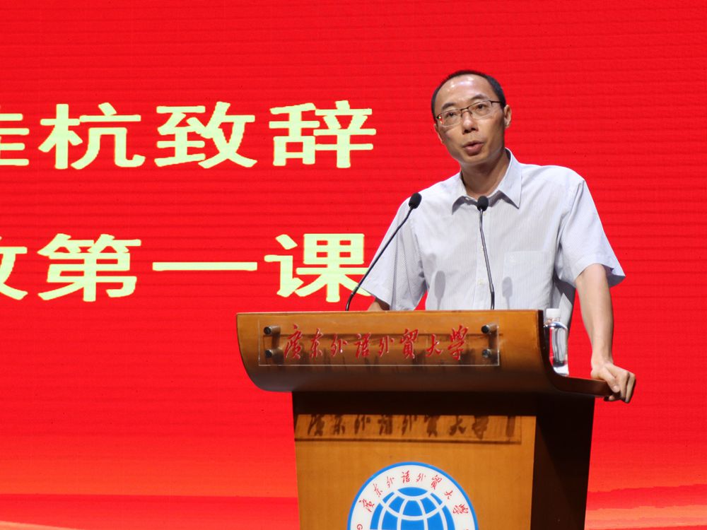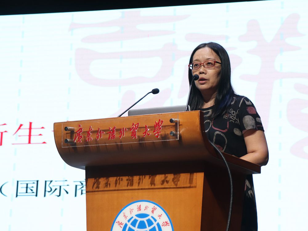 教师代表乐思伟简单介绍了商英的办学特色以及国际化人才培养目标。她表示大学阶段最重要的是了解自己,树立理想,同学们要充分利用公司资源提升自己,不负在广外的四年。