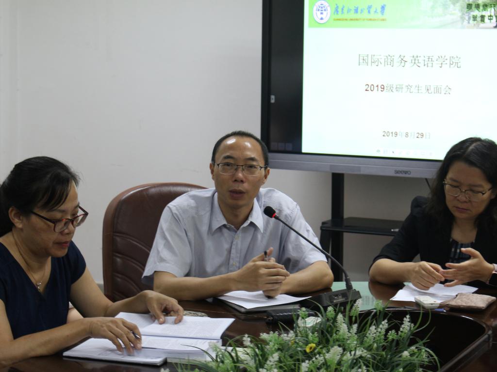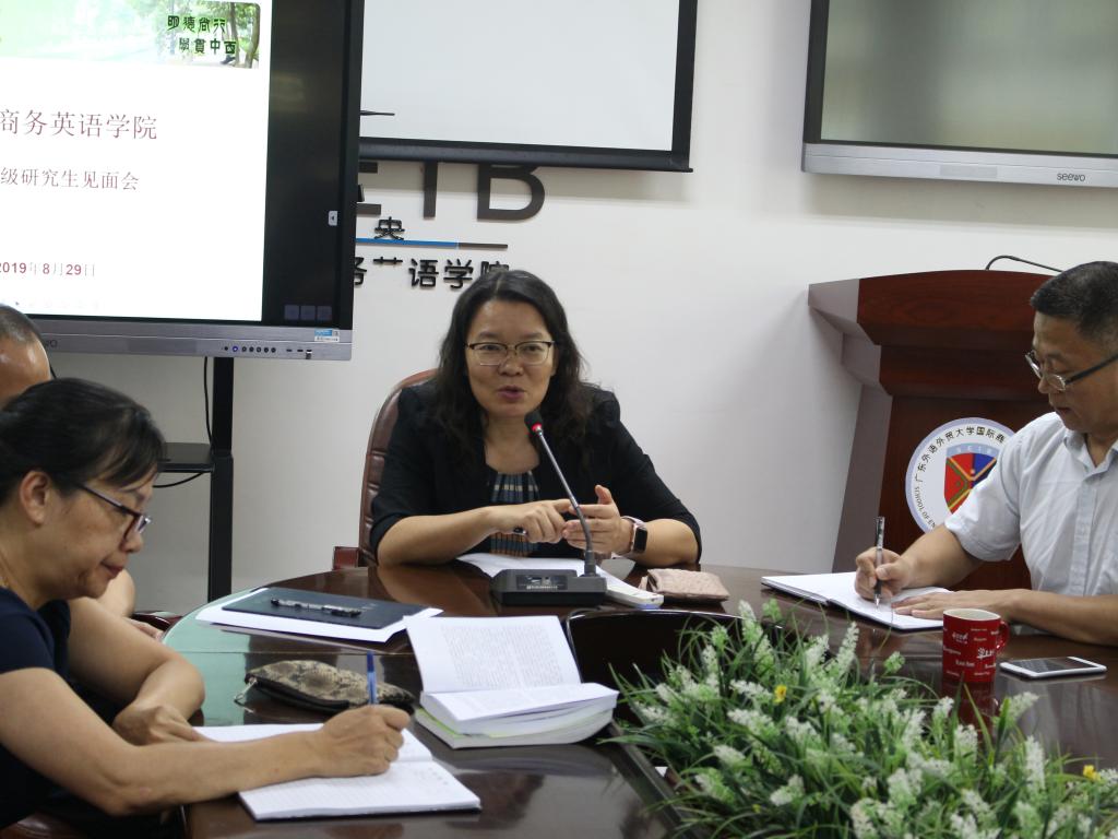 为增强公司与研究生新生间的沟通,帮助新生尽早适应广外生活,8月29日16:00,2019级研究生新生见面会在三教318举行。经理郭桂杭、公司党委书记王秀民、副经理胡春雨院和党委副书记李江出席见面会。