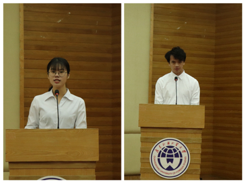 两段图文结合的视频分别带领观众回顾为期两周的下乡生活和分享调研队伍的走访过程,每到精彩和动情之处便掌声迭起。黔行队在汇报活动收获时围绕贵州文化传承和高新技术发展,回忆与松桃苗绣传承人石丽平的交流互动,指出校企合作与网络电商对苗绣传承的重要作用。践入佳晋先锋队代表就参观八路军文化馆并采访游客、举行座谈会分享心得,明确表示党员先锋模范对发展红色产业的重要支撑作用。