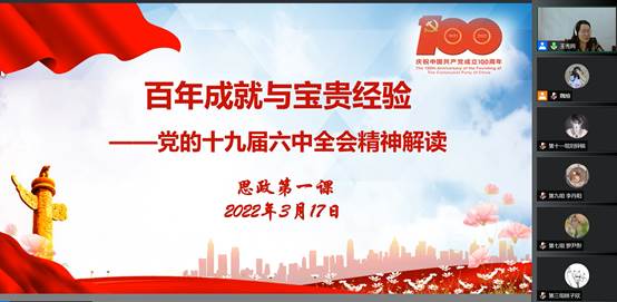 王秀民介绍了党的十九届六中全会概况和召开的背景,带领学员学习了百年党史中的三个《决议》,深入阐述了党的十九届六中全会的主要内容,重点解读了党的十九届六中全会的重要成果和核心要义,对中国共产党百年奋斗的五大历史意义做了详细的讲解,勉励商英学子“勿忘昨天的苦难辉煌,无愧今天的使命担当,不负明天的伟大梦想”。王秀民指出“十个坚持”的历史经验总结非常精彩、内涵丰富,不仅仅是我党治国理政的重要经验,也对广大青年员工成长成才具有相当的指导意义,希望各位同学认真研读,将政治信仰转化为自身的人格品质,内化于心,外化于行。