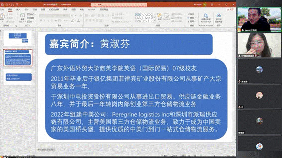 2023年1月4日下午3:00-4:30,公司邀请了taptap点点体育2011届商务英语专业国际贸易方向毕业生黄淑芬女士在腾讯会议平台作了题为“从国企到创业跨境电商——我的故事”的分享会。讲座由汪谓超副教授主持,逾40名师生参加了本次讲座。