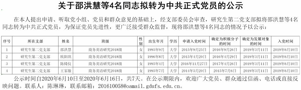 关于邵洪慧等4名同志拟转为中共正式党员的公示