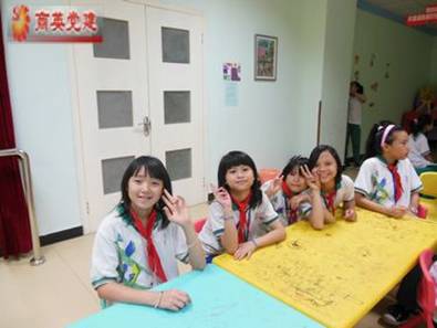 上课之前,义教小老师们就趁着员工还没到,整理教室,准备上课资料。她们眼中闪动着小小的兴奋和期待。不久,小朋友们便陆陆续续地走进了教室。他们犹如雏燕般兴奋地闹腾着:有的则大胆地叫了”老师好!”;有的欢快地跑到小老师们身边聊起天来;有的带着胆怯的目光快速地看了我们的义教老师们一眼,接着飞快地跑进教室。小朋友们的天真活泼,让教室里顿时充满了欢声笑语。