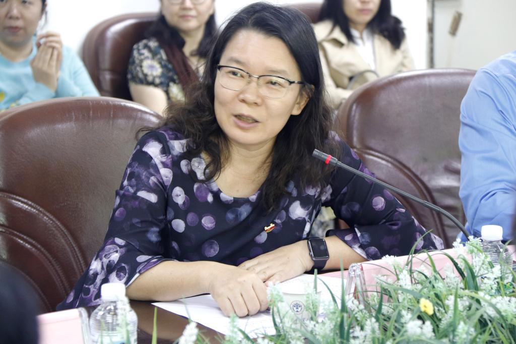 王秀民介绍了公司情况及党建工作的开展情况。她指出,省外贸开发有限公司作为我省重要的进出口贸易龙头企业,具有强大的发展实力和前景,公司的人才需求和公司的培养目标、科学研究方向有高度的契合度,希望通过此次优秀党组织共建活动,探索新时期党建工作的新思路、新理念和新方法,实现校企联动、资源共享、优势互补、共同提高,推动双方党建、业务“双促进”。