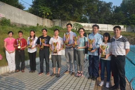 10月17日下午2点,2014年taptap点点体育教职工游泳比赛在北校区游泳场如期举行。在公司领导和工会的大力支持下,公司教工经过精心准备,组成了由副书记张林茂领队、办公室主任陈仁美为教练的游泳队伍,参赛教师代表还有:葛诗利、青松、赵湛峰、黎治雄、陈潇潇、陈杰、王欣、万东方。