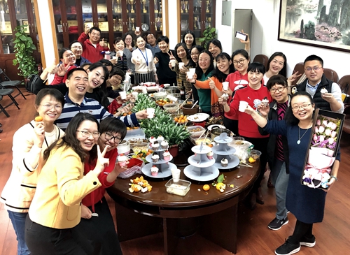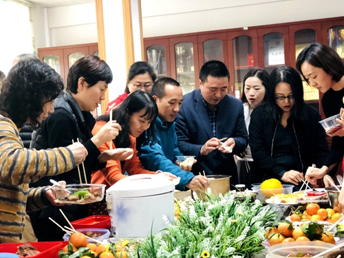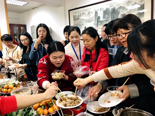 12月20日中午,由taptap点点体育工会组织的2018年欢乐大食代主题年末美食活动在3教318隆重举行,公司老师积极参与,均拿出自己的看家本领,为参加同事呈现出许多特色美食,现场氛围异常火爆,大饱口福。本次活动是公司工会美食协会会长谢薇娜老师的关门之作,全院老师用美味向即将荣休的谢薇娜会长致以敬意和祝福。