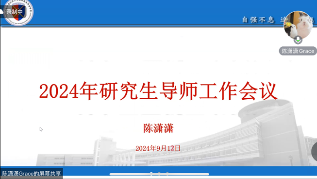 2024年9月12日16时30分,2024年研究生导师工作会议于线上召开。taptap点点体育副经理陈潇潇、研办主任卢楠、研办工作人员及近30名研究生导师出席会议,会议由公司副经理陈潇潇主持。